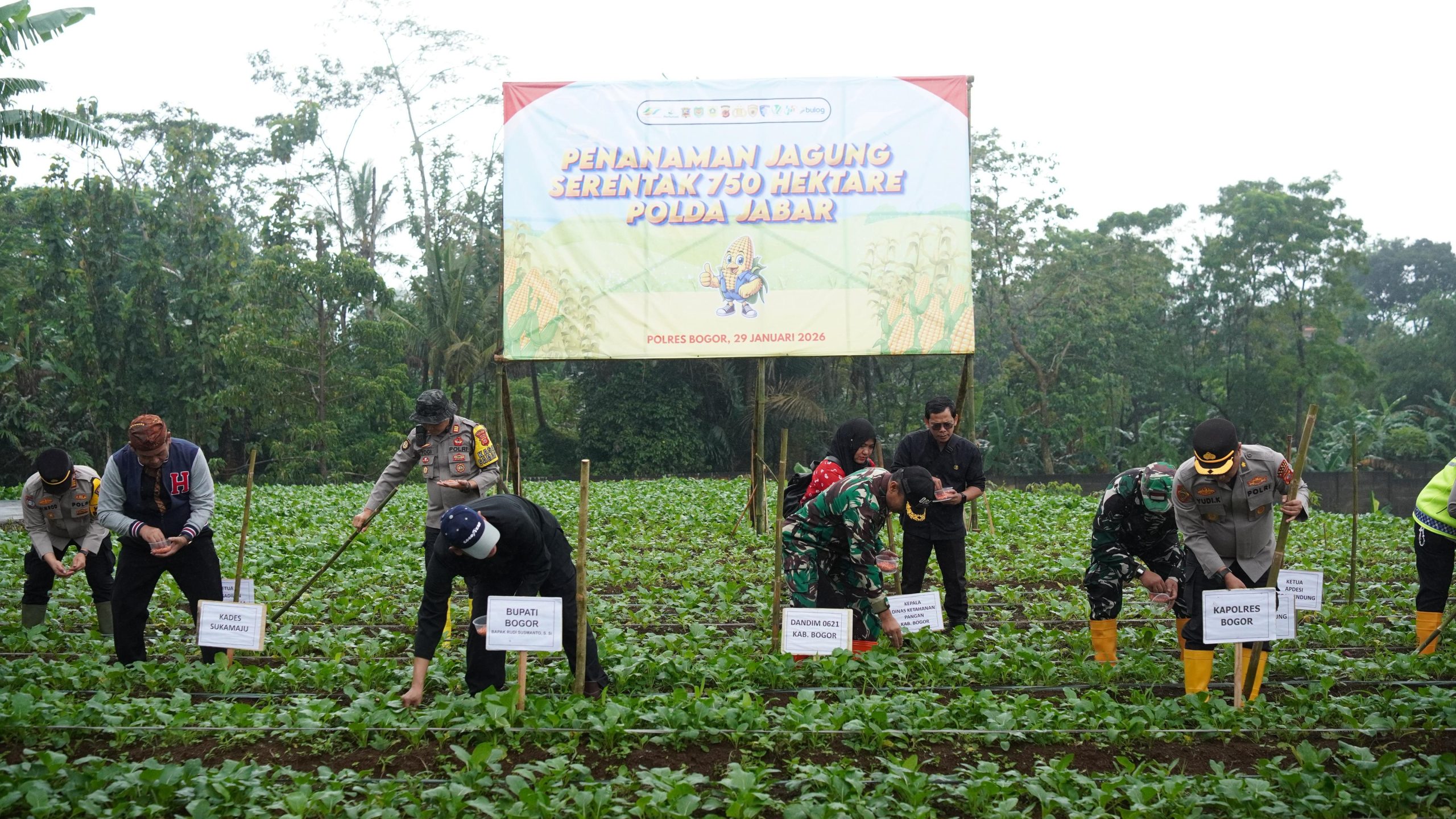 Polres Bogor melaksanakan kegiatan penanaman jagung serentak kuartal I dalam rangka mendukung program Polri untuk ketahanan pangan nasional.